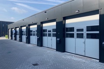 - elektrische bediende geïsoleerde sectionaaldeur (3.2 m1 b. x 3.6 m1 h.) met loopdeur;