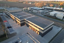- geïsoleerd staaldak (Rc-6,3) voorzien van PVC dakbedekking en twee dak doorvoeren;