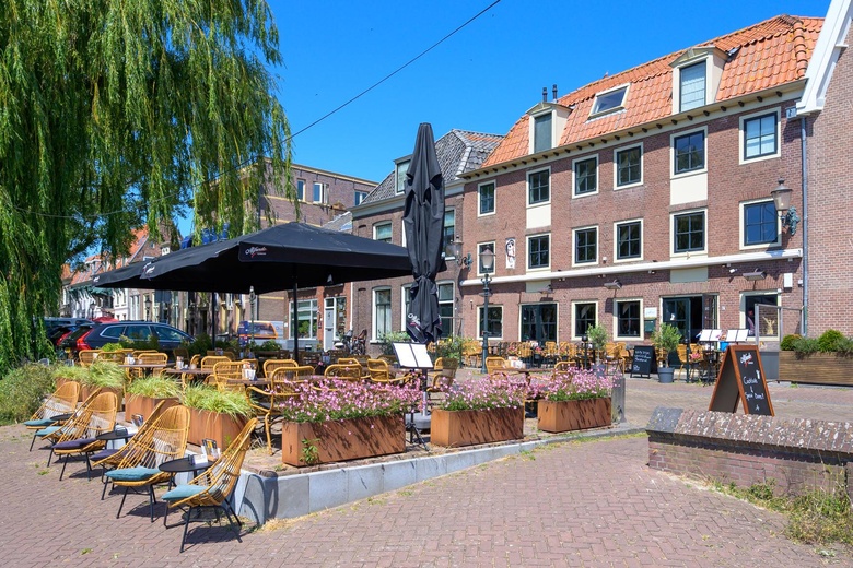 Het betreft een tussengelegen (horeca) bedrijfspand en een aangebouwd pand aan de achterzijde met daarboven een recent gerenoveerde studio. Aan de voorzijde bevindt zich een breed gevelterras en een nog ruimer terras aan het water, waardoor het pand goed opvalt. Er is veel pleziervaart door de Oude Haven, die voor de deur kunnen aanmeren om vervolgens op één van de twee terrassen, of binnen, een maaltijd of drankje kunnen nuttigen.