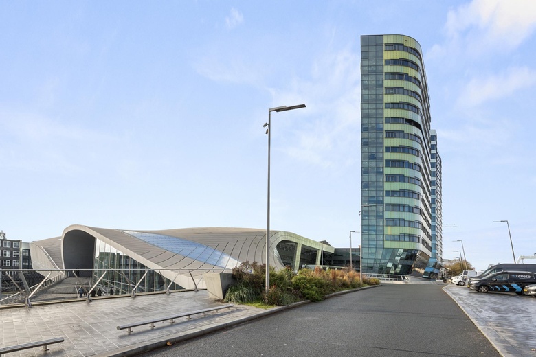 Het kantoorgebouw is plaatselijk bekend als de ‘Parktoren’ en is gesitueerd direct boven het NS Station Arnhem Centraal. Het betreft het markante (groene) kantoorgebouw ‘Parktoren’, dat samen met de ‘Rijntoren’ (blauw) de skyline van het centrum van Arnhem domineert. Het ontwerp is van de hand van