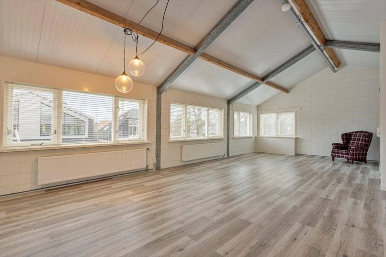 Lichte werkruimte door royale raampartijen.